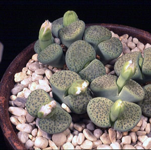 Пересадка: Пересаживаются литопсы только тогда, когда корни заполнять весь горшочек. Емкости для посадки должны быть широкие и не глубокие с высоким слоем дренажа. Почва - 1 часть листовой земли, 1 часть речного песка, 1/2 части глины. Во избежание загнивание стеблей и корней, целесообразно сделать и верхний дренаж из мелкого гравия.